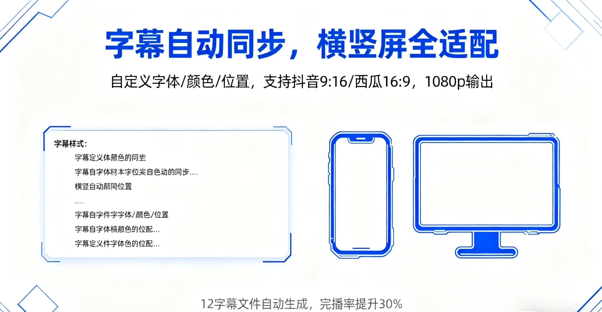 视频生成的同时自动匹配高精度字幕,字体、颜色、大小和位置均可自定义设置,确保不同设备下都能清晰阅读,有效提高完播率与用户停留时长。