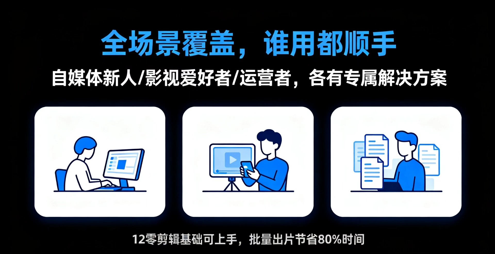 自媒体新人:无需掌握PR、AE等专业软件,零剪辑经验也能快速产出优质视频。