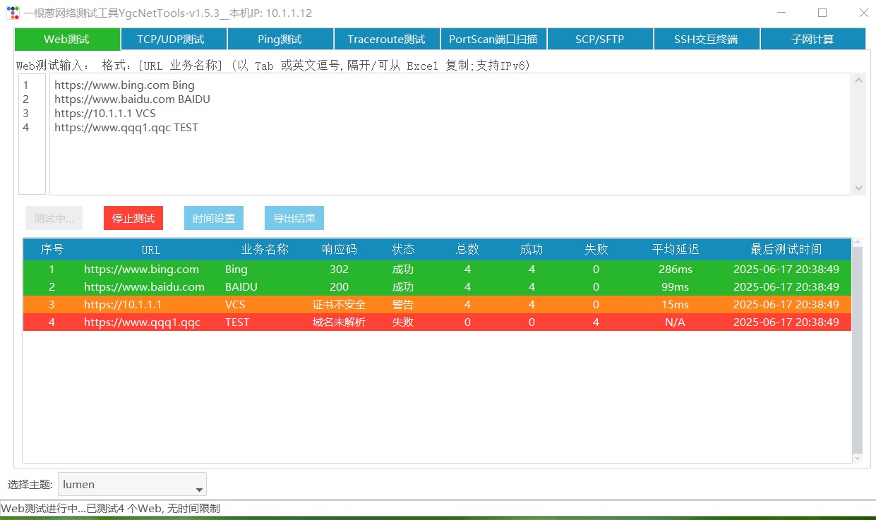 YgcNetTools提供精准的Web层面延迟和数据包丢失检测功能,帮助用户快速评估网站访问质量,定位网络响应问题。