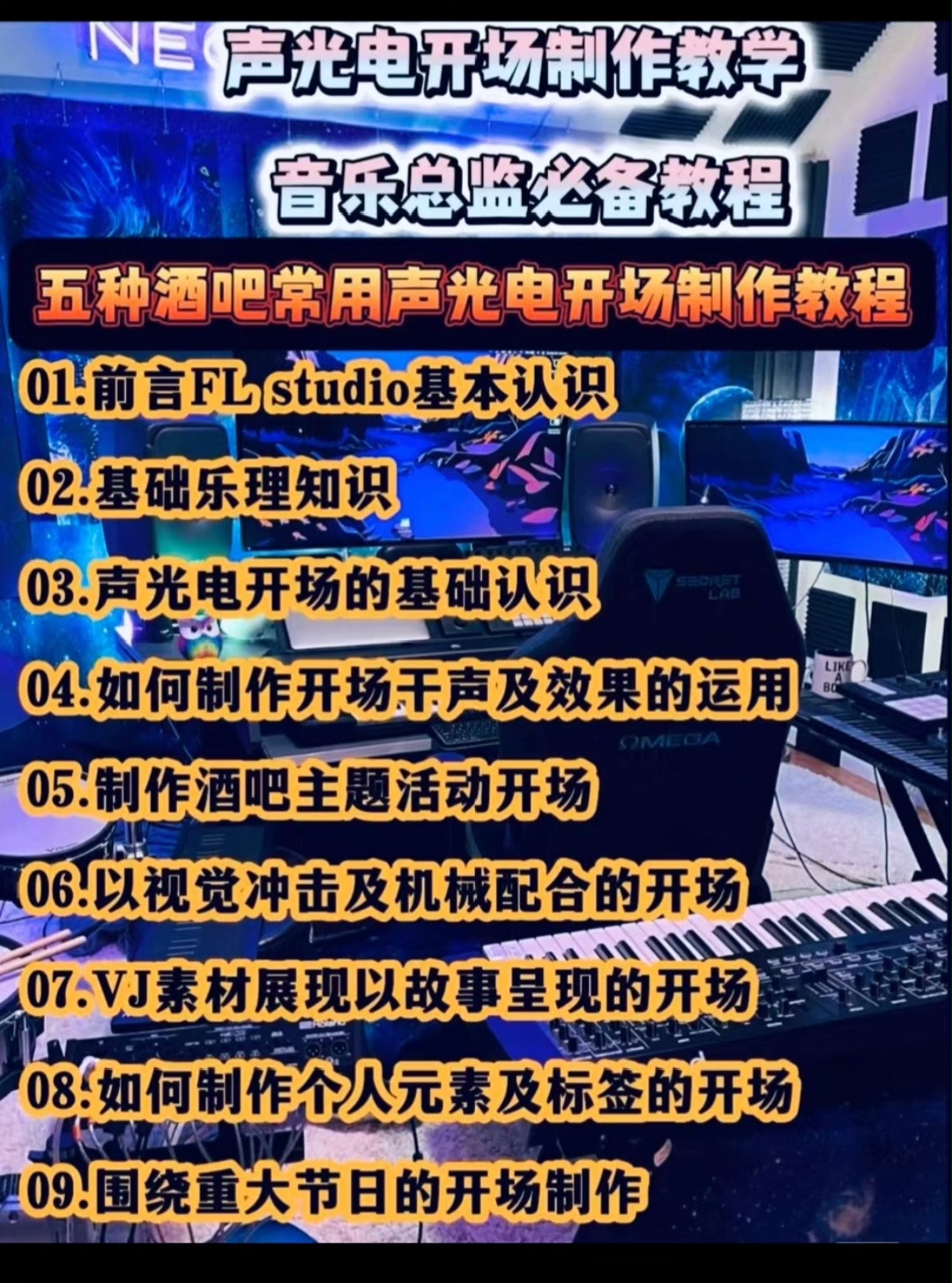 本教程精心打造了共计10节系统化课程,每节课时长约60分钟,内容层层递进,涵盖音频剪辑、灯光同步、视觉特效与节奏控制等关键环节。