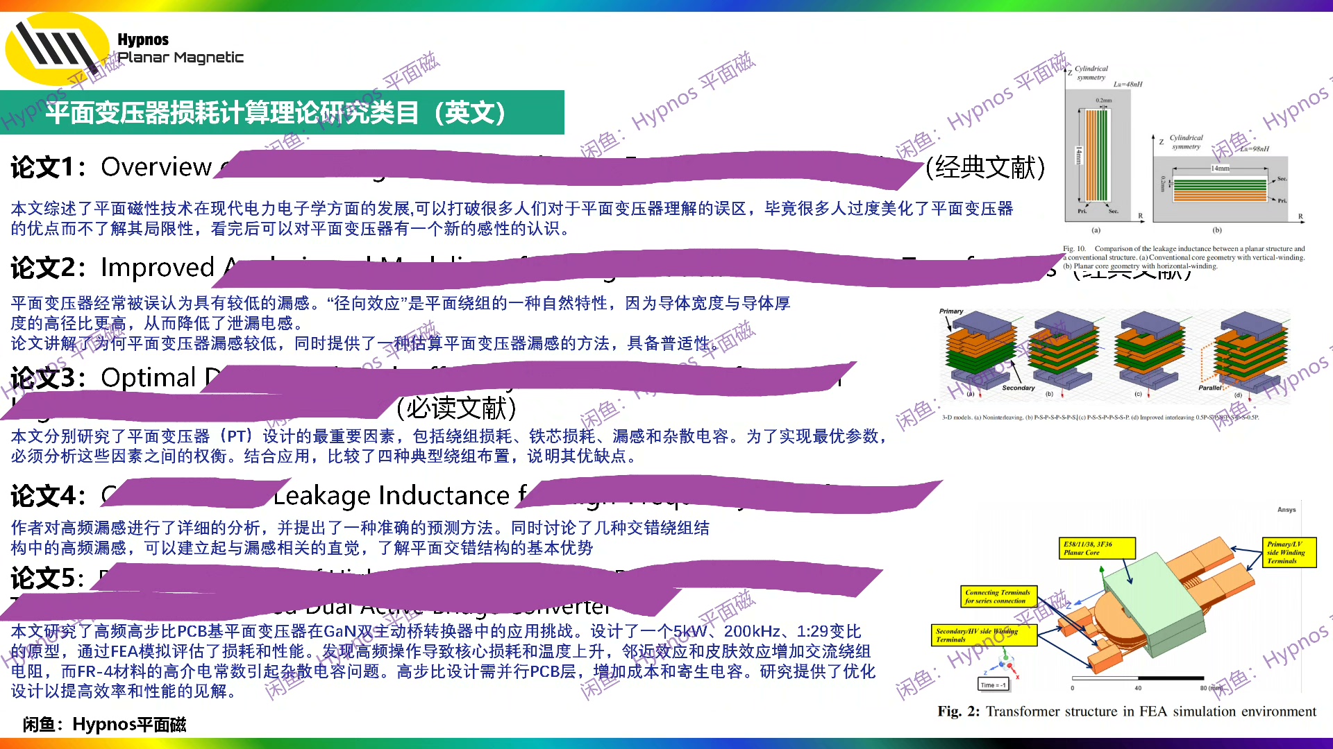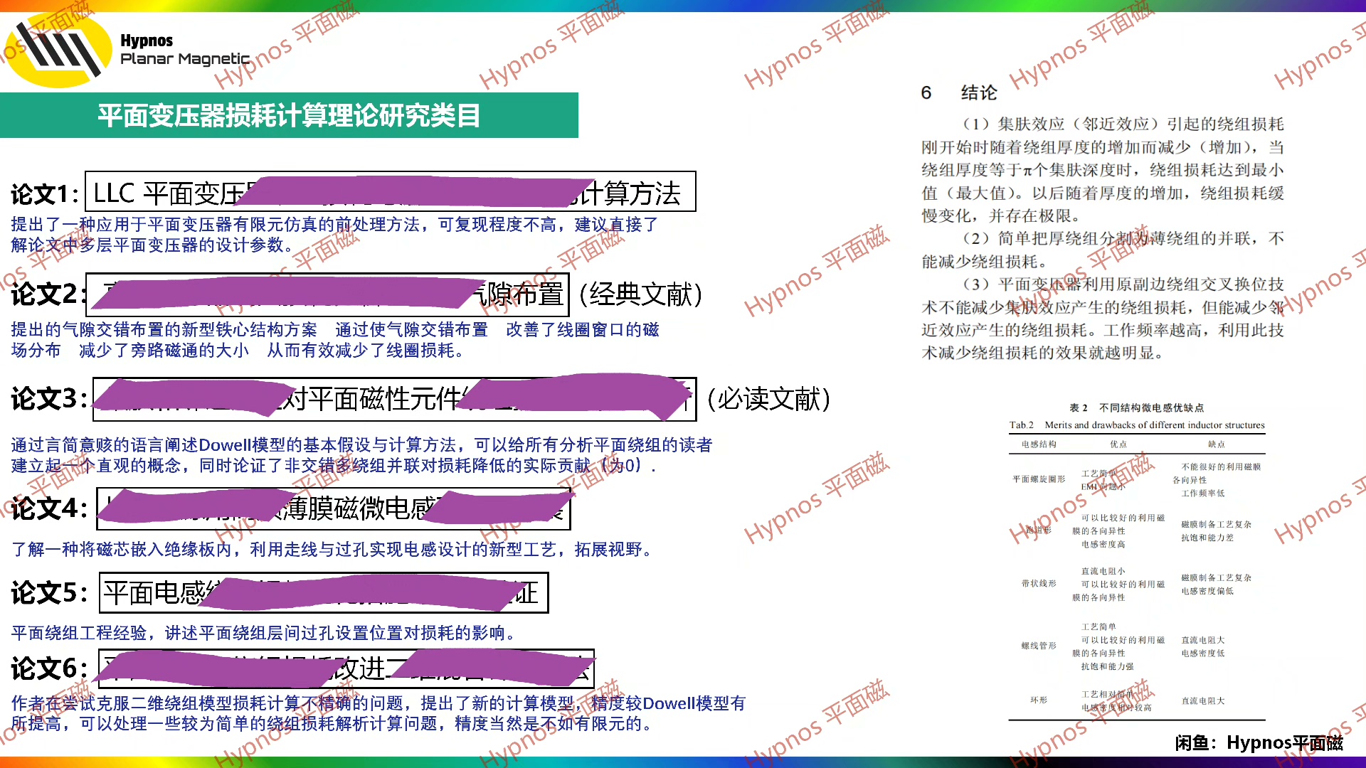 资料包含6篇中文核心论文与6篇英文经典文献,内容涵盖平面变压器的基本原理、结构特点、损耗分析及优化设计方法。
