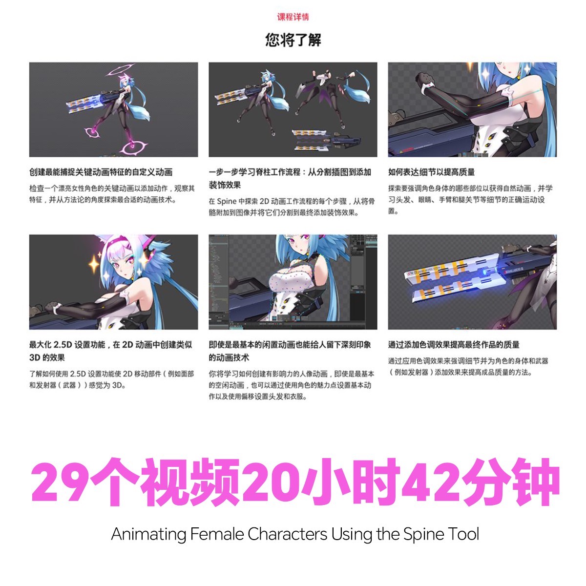 本套中文完整版Spine动画教程专为想深入学习2D骨骼动画的创作者设计,聚焦女性角色的灵活动画制作。