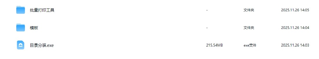 套装包含主程序、参考模板(xlsx格式)及批量打印工具。