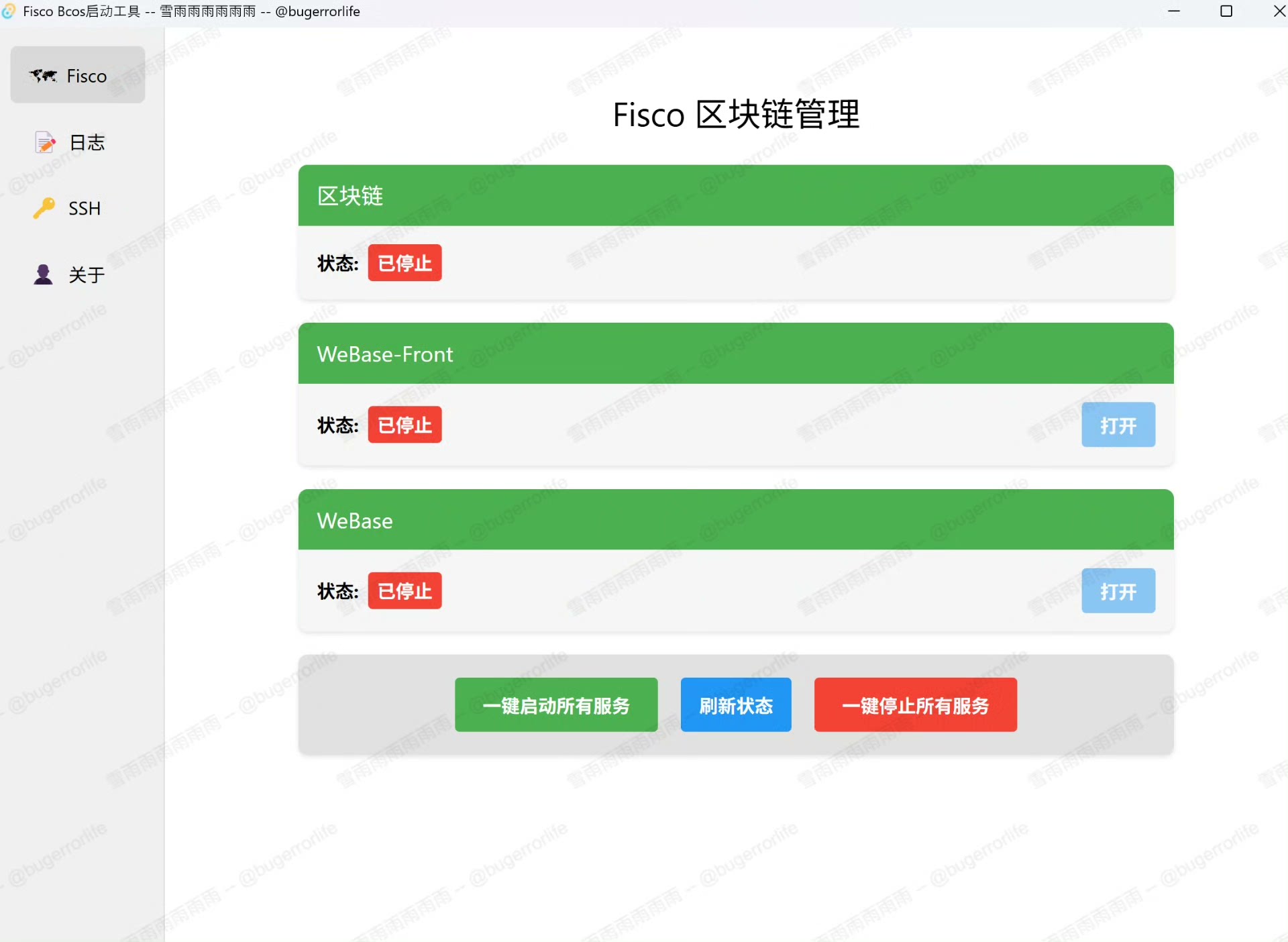 可视化区块链启动关闭工具,最新版本区块链,fabric2.5 ,fisco3 (已修复WEBASE交易合约参数显示bug)
